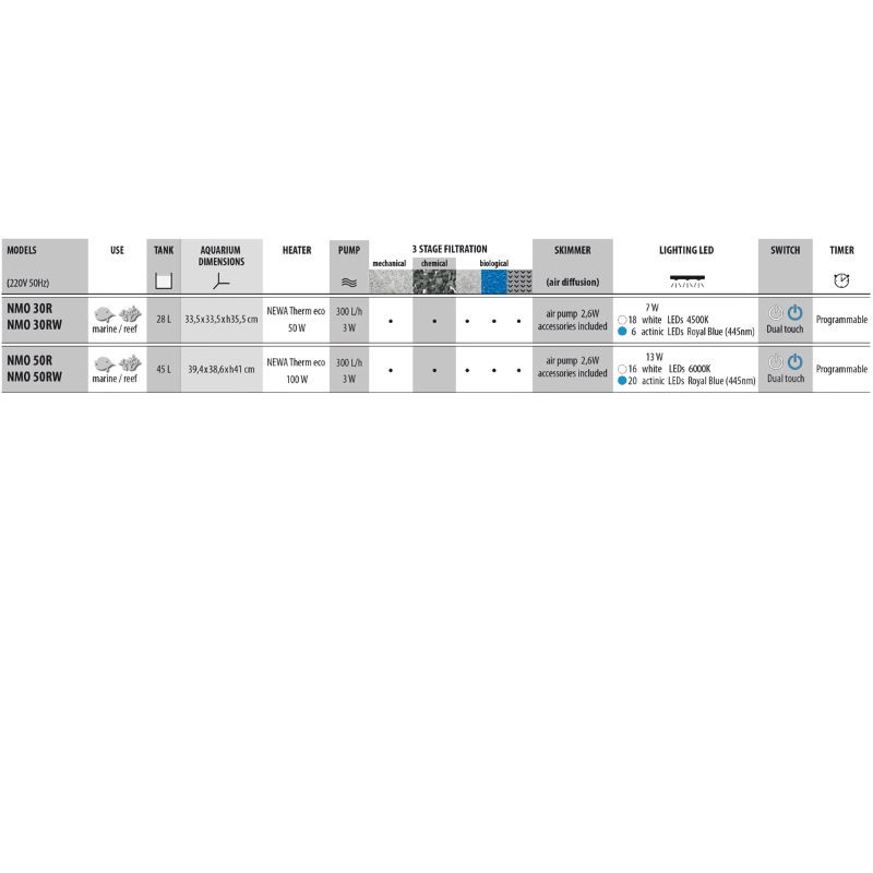 Toate acvariile de recif NEWA More au un sistem de filtrare patentat complet revolutionar, care intr-o singura unitate.Rafinamentul conturat si dimensiunile compacte permit acvariilor NEWA More recif sa se potriveasca perfect cu orice fel de mobilier.