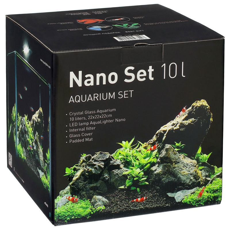 Set-ul de acvariu de la AquaLighter contine acvariul propriu-zis, un filtru, un capac de sticla si o lampa eleganta cu LED-uri. Este inclus, de asemenea, un covor pentru a pune sub acvariu.Acvariu este fabricat din sticla transparenta de calitate, iar marginile sale sunt tesite si lustruite. Lipiturile sunt foarte precise si abia vizibile datorita utilizarii siliconului transparent.