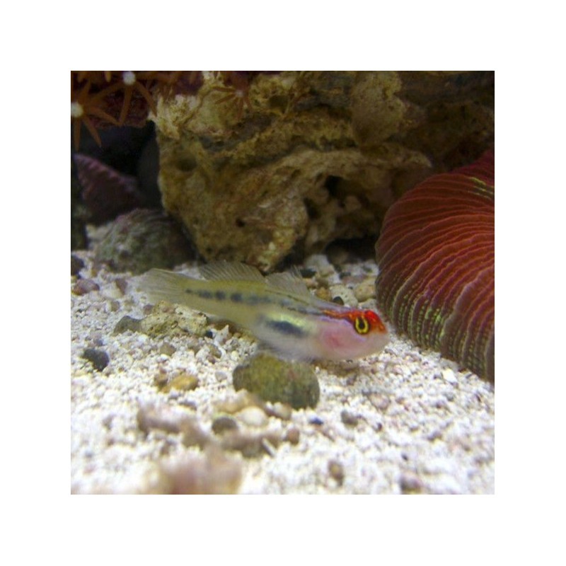 Se gaseste de la Marea Cortez până în Ecuador și este singura specie din Pacificul de Est. Acest gubiu mic, după cum sugerează și numele, are un cap roșu strălucitor cu un corp translucid. În culoarea roșie există dungi aurii și albastre vii. Gobiul cu cap roșu este un ghiuciu mai curat și nu este neobișnuit să vezi persoane care îndepărtează paraziții de la alți pești. Inițial sunt puțin mai criptici decât unii dintre omologii lor din Caraibe, dar odată ce se simt confortabil într-un rezervor, tind să rămână în aer liber, unde capul lor vibrant îi face ușor de observat. Dimensiunile lor mici și comportamentul pașnic le fac perfecte pentru rezervoarele mari și mici deopotrivă.